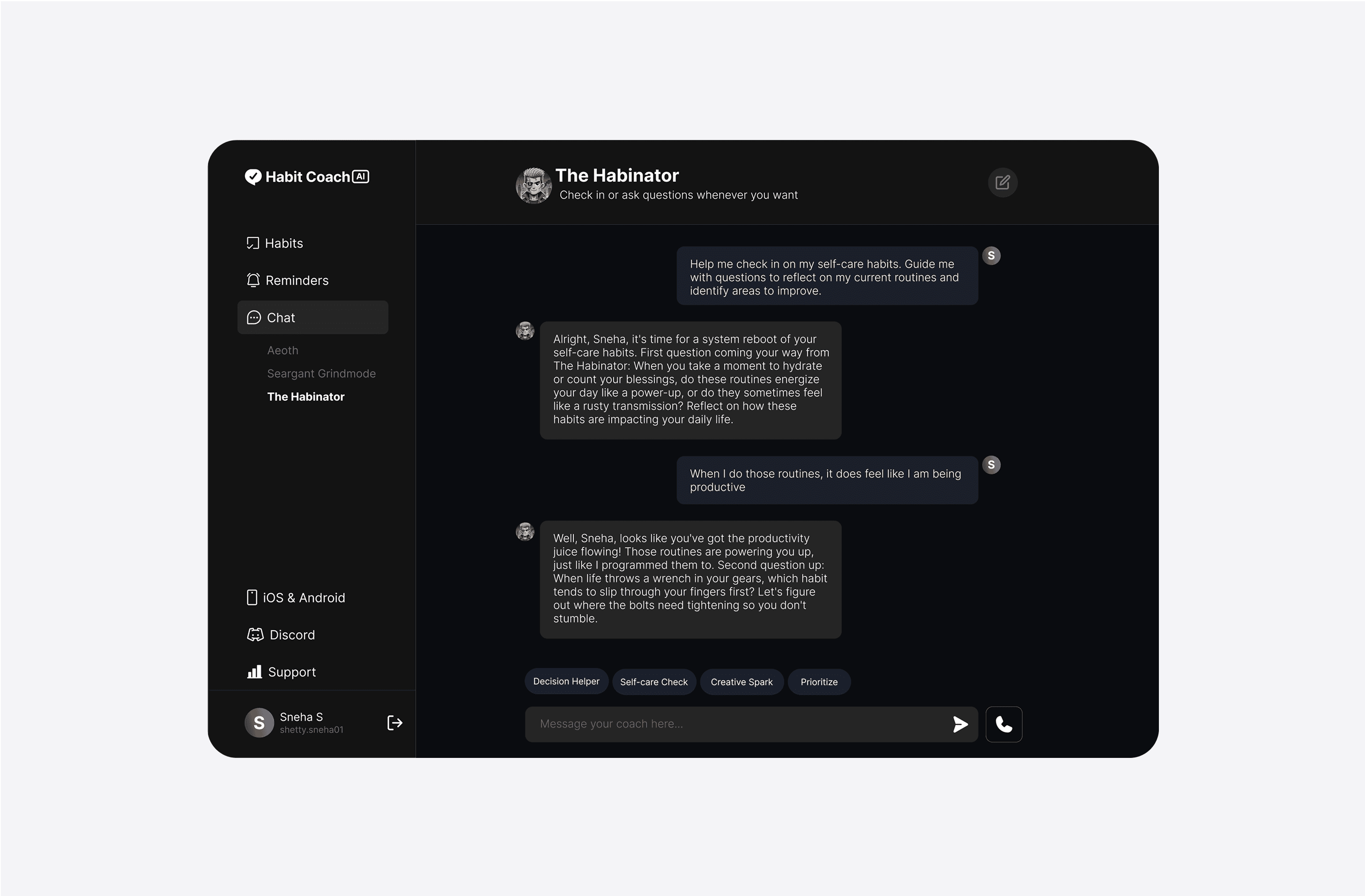 Hi, I'm Sneha, a Product Designer with a background in visual arts. I have experience designing for start-ups and global companies in the GenAI consumer app and enterprise tool domains. Currently @Habit Coach AI.